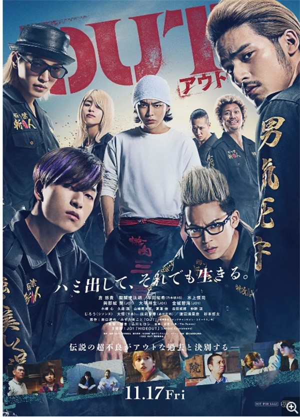 《OUT》是以水岛宏在《Down》中饰演的“狛江狂犬”井口达也为主人公的后传,描写了17岁的井口离开当地与新朋友一起度过的壮烈青春岁月。