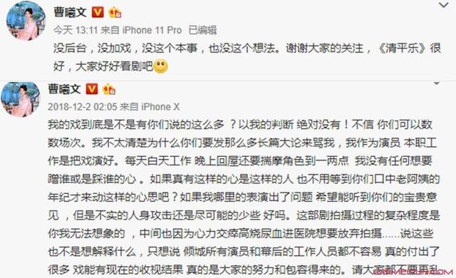 曹曦文两次否认加戏