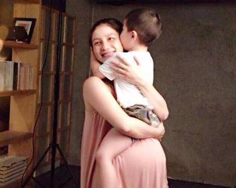 胡可的这张大肚照也是有意思,安吉直接爬到妈妈的大肚子上面,抱着妈妈亲吻,这画面看上去有没有很温馨?
