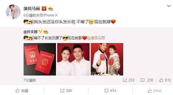 自从跟马丽在一起以后,许文赫发的微博,基本都是跟马丽有关的: