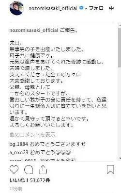 17 日,佐佐木希官宣二胎喜讯 ↓