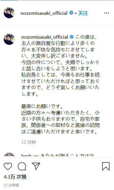 不但不想离婚,还针对渡部建出轨一事发文道歉,并请求大家为孩子考虑,不要再直接采访家人和相关者。