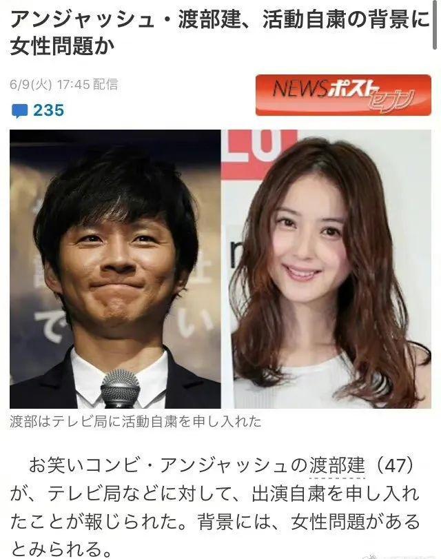 这件事情还没过多久,渡部建就被曝家暴和出轨,他本人也向各家电视台提出了停工请求。