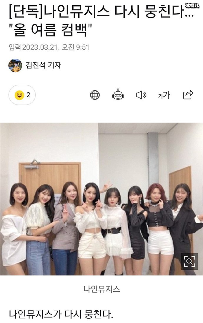 如今,知道NineMuses将夏天回归的消息后,粉丝及喜欢她们的网友都很开心,接下来请期待NineMuses的具体回归行程吧。