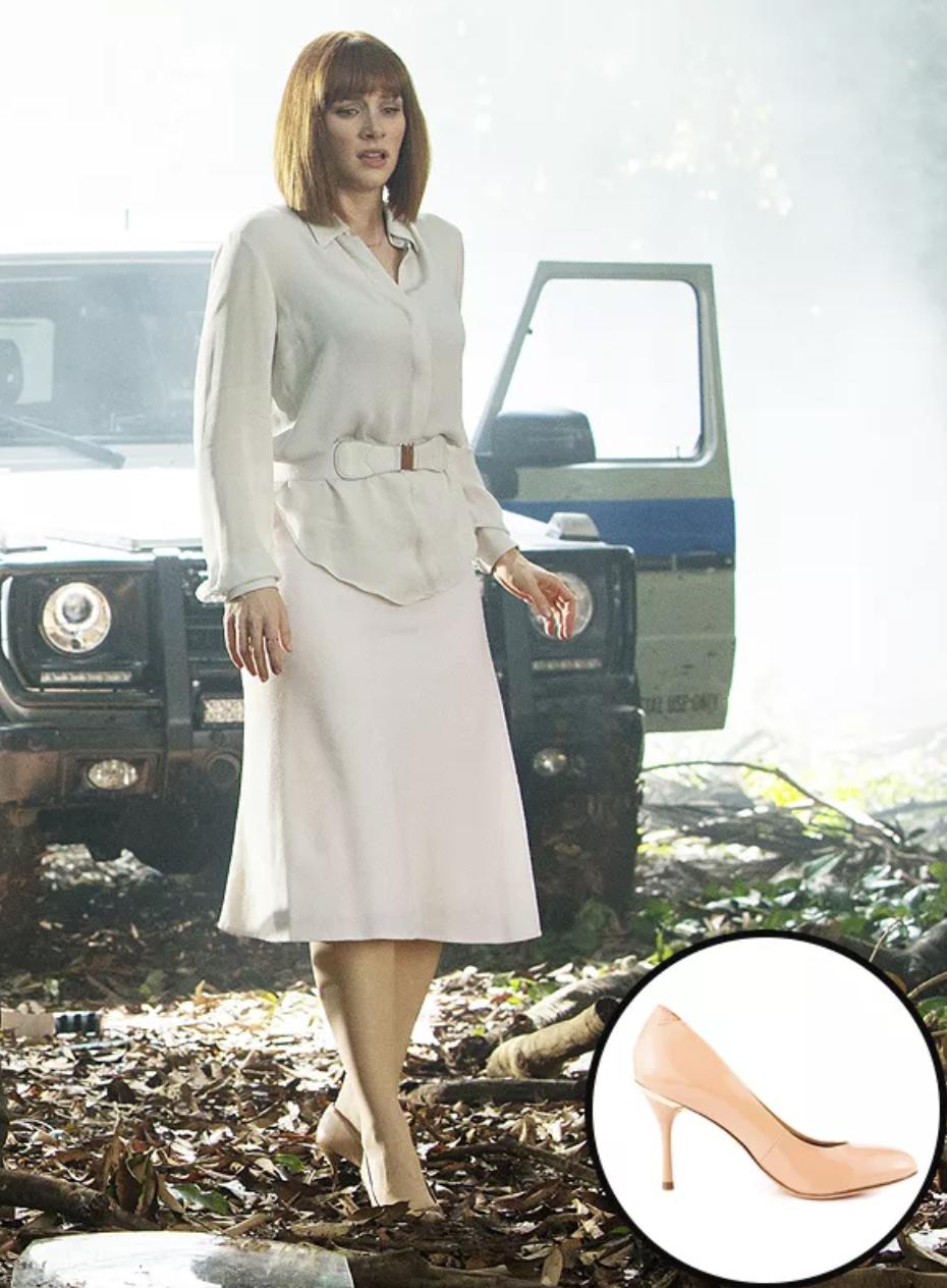 2015 年上映的《侏罗纪世界》,女主从头到尾都穿着一双 3.5 英寸(约 8.89 厘米)的尖头高跟鞋,在泥泞的丛林中奔跑,躲避恐龙袭击。