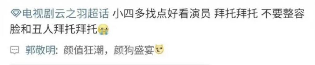 譬如去年,郭敬明监制的《云之羽》主打 " 颜狗盛宴 ",营销手段没离开过一个字 " 美 "。