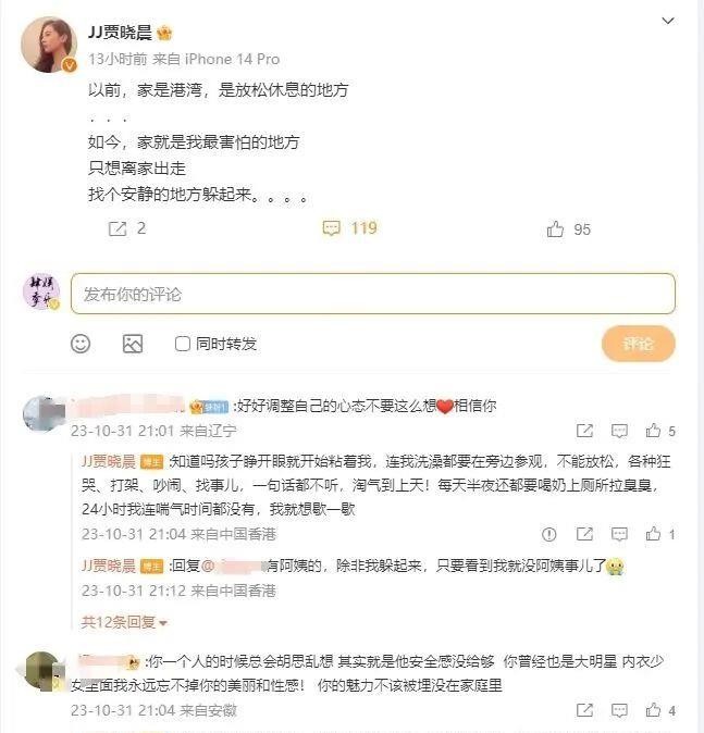 贾晓晨作为一位母亲,肯定承担了巨大的责任。她的恐惧感源自于对育儿压力的无法承受,希望能够暂时离开家寻求一些宁静和放松的时间。这种感受在现代社会中并不罕见,很多妈妈们都会有类似的压力和心情。然而,这个问题也引发了网友们的讨论和担忧。