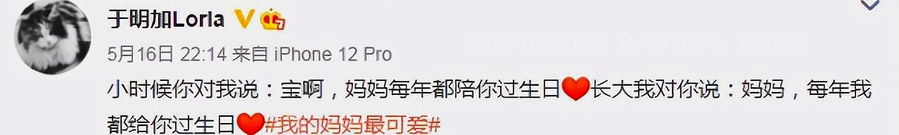 于明加,一个备受瞩目的演员,她在演艺圈崭露头角,展现出孝顺和贴心的品质。5月16日晚,于明加在社交媒体上分享了一组照片,庆祝母亲的生日。这些照片展现了她的感恩之情和深情厚意。她还用标签“我的妈妈最可爱”来表达对母亲的爱和敬意。