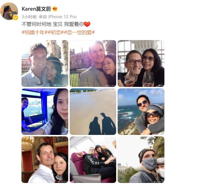 10月2日,51岁的莫文蔚庆祝和老公结婚十周年纪念日,并高调表白:“不管何时何地,宝贝,我爱你!”
