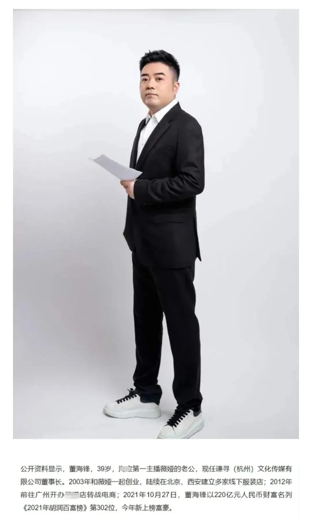 薇娅老公董海锋:拥有220亿财产,是林依轮和海清的老板