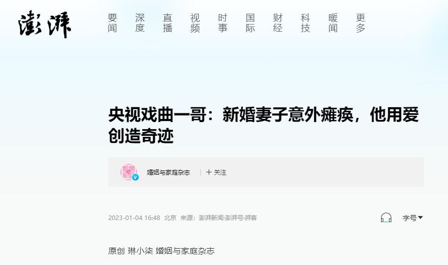 央视戏曲一哥:新婚妻子意外瘫痪,他用爱创造奇迹_澎湃号·湃客_澎湃新闻-The Paper