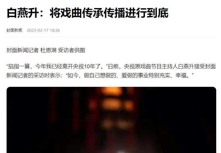 封面新闻2023年2月17日——白燕升:将戏曲传承传播进行到底