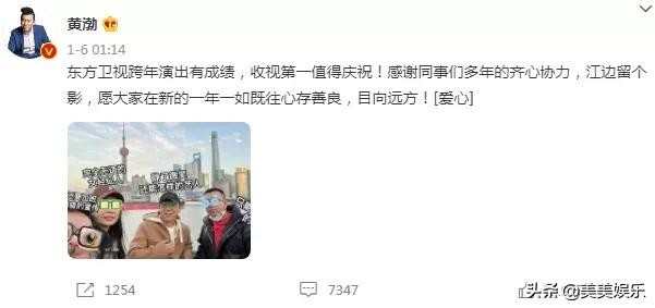 黄渤po出了当时几个人在上海外滩的合影,并配上了文字,指明那位女子是自己的经纪人。