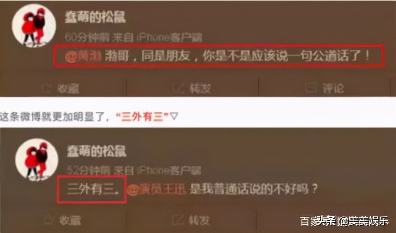 然而王迅不知足,小三在网上公开要黄渤出来说句公道话,艾特王迅“三外有三”。
