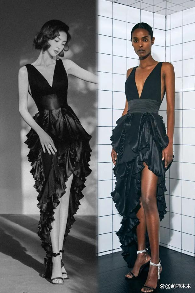 虽有高定加身,但上身效果略显寡淡,倒不如同场李一桐的这款深 V 小黑裙更为亮眼。