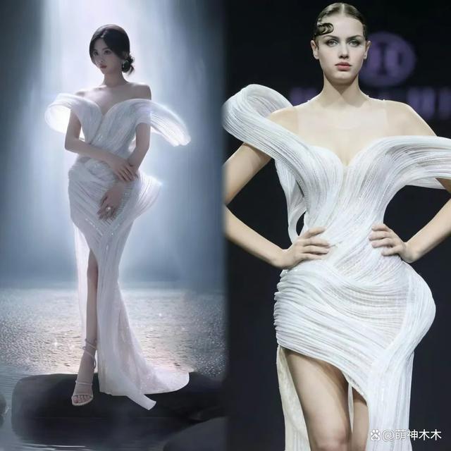 自之前的礼服翻车后,杨超越这次的选择很显智慧,虽然这套白色轻纱鱼尾裙来自婚纱品牌,但整体设计轻盈灵动,很符合杨超越的气质和身材。