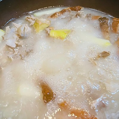 3、加胡椒粉和盐,煮到鸭汤变雪白