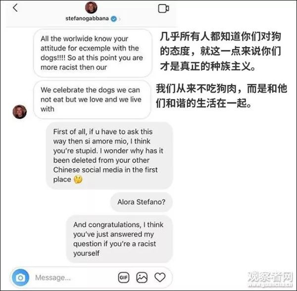 一位网友在ins story说起这件事,D&G设计师Stefano Gabbana前来争辩,恼羞成怒大骂出口,还公然辱华,并放话说不怕被曝光。