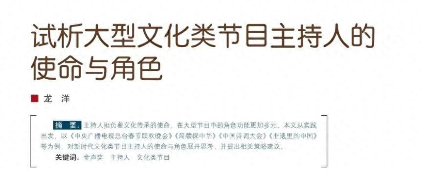 央视知名主持人,中国传媒大学博士研究生龙洋近期在《电视研究》上发表一篇文章。