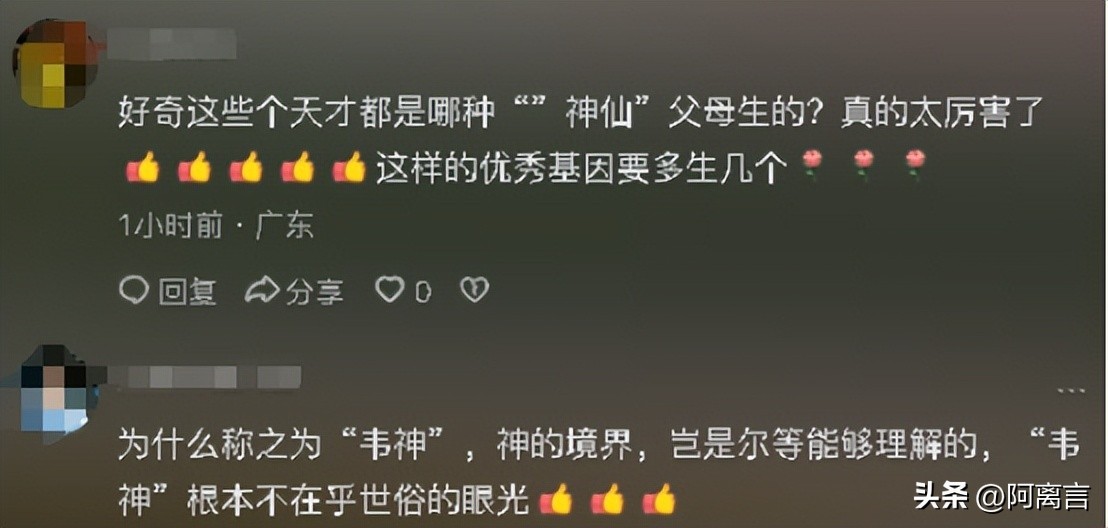 韦神这样的外在形象也不得不让一些家长发表了一些“离谱”的评论,称自己看见韦神这样,十分害怕自己的孩子以后也活成他这个样子,还表示自己挺难过的。