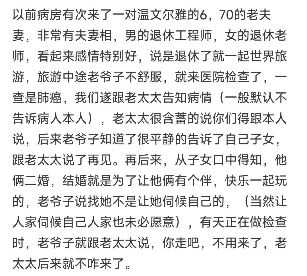 可能连证都没有领,就算老太太想照顾老头。男方子女怕她分财产都不一定乐意让她照顾