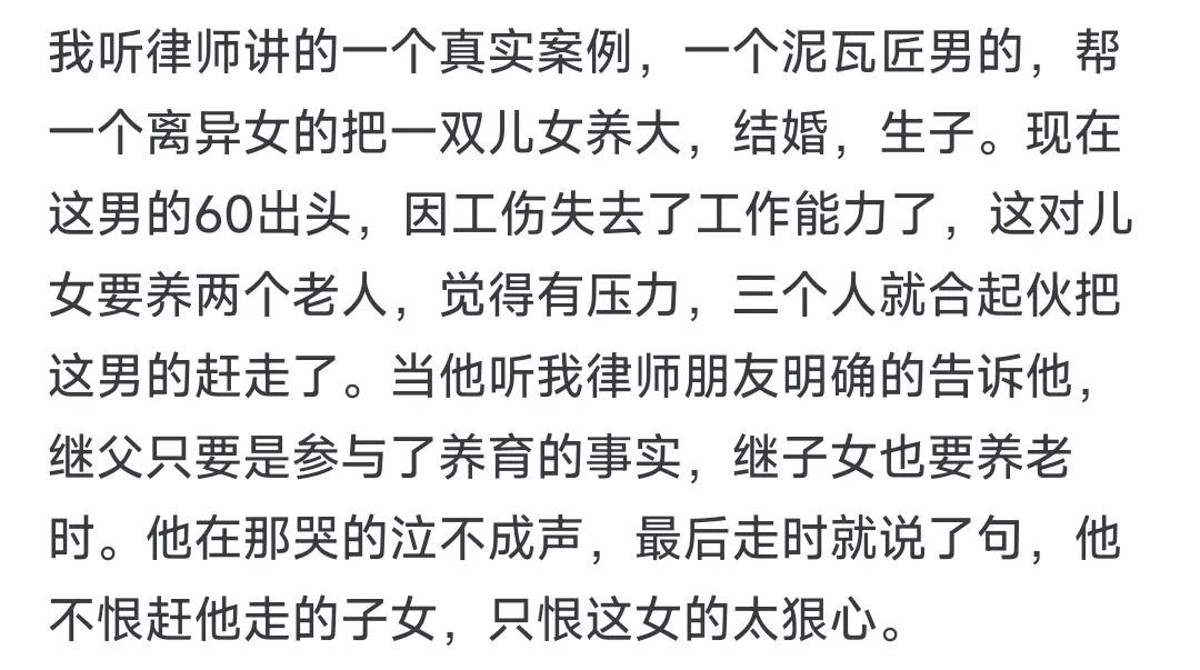 有养子女很孝顺的,但是大部分都渣,前辈们把路走窄了,所以现在的离异带娃的就敬而远之