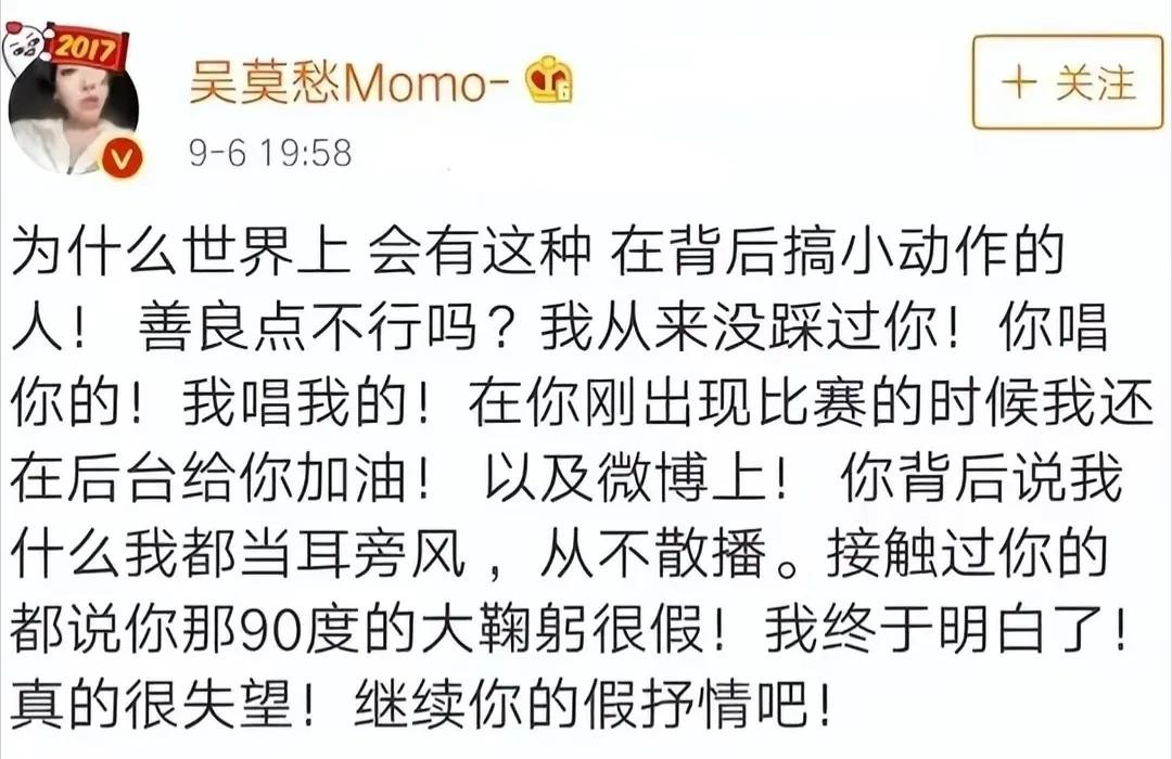 这一消息无疑给吴莫愁造成了重大打击。