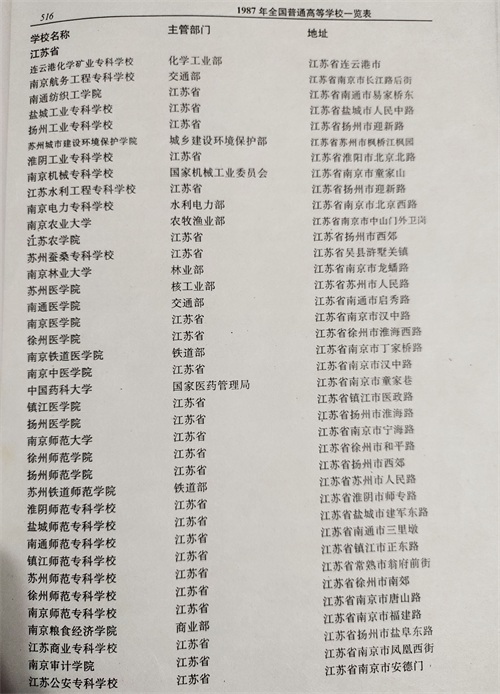 1987年的江苏高校名单
