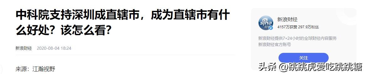 原文记载于新浪财经2020年8月4日关于中科院支持深圳成直辖市,成为直辖市有什么好处?该怎么看?