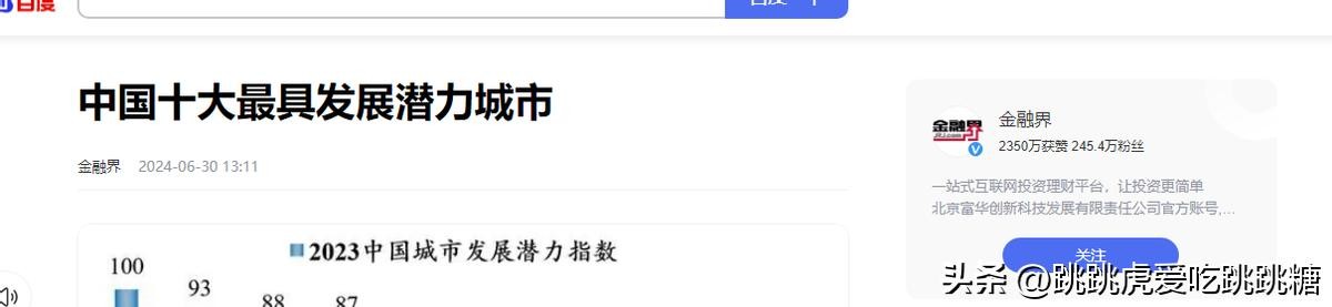 原文记载于金融界2024年6月30日关于《中国十大最具发展潜力城市》