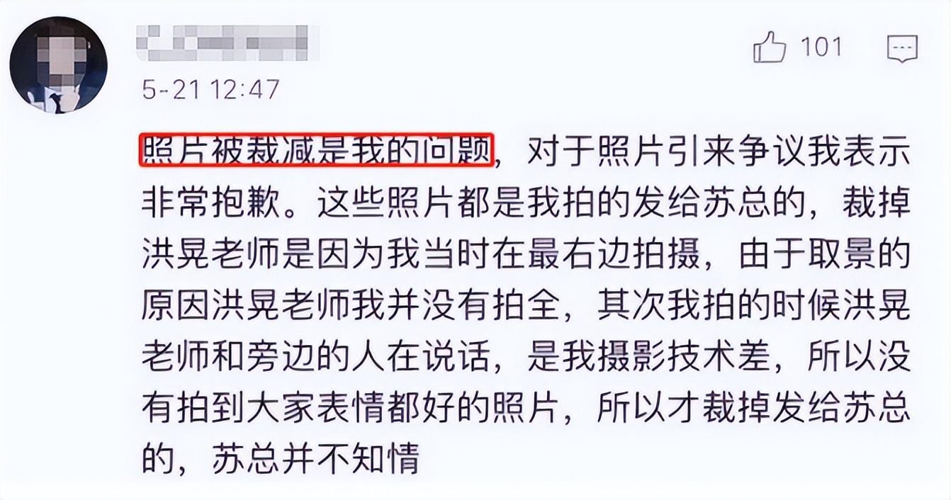 作为回敬,苏芒在某次时尚活动的合影中,故意将洪晃的身影裁剪掉。