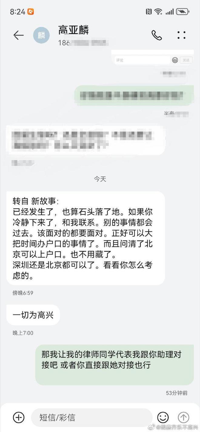 高亚麟:你受的委屈,以至于后来的找别人去了。我也清楚你也想有个完整的家,正如你所说,你觉得你的付出没有被重视,不值得。也是我为什么一直分开又厚着脸皮找你的原因。怕我俩后悔,也怕伤害高兴(孩子)。因为都清楚孩子只有和亲爸亲妈在一起才幸福。