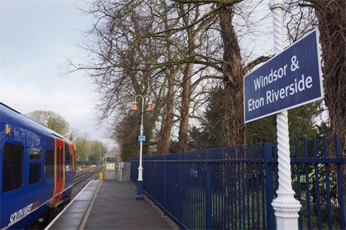温莎城堡位于英国英格兰东南部区域伯克郡温莎-梅登黑德皇家自治市镇温莎,目前是英国王室温莎王朝的家族城堡,也是现今世界上有人居住的城堡中最大的一个。 温莎城堡的地板面积大约有45,000平方米,是英国君主主要的行政官邸。现任的英国女王伊丽莎白二世每年有相当多的时间在温莎城堡度过,在这里进行国家或是私人的娱乐活动。 图为温莎火车站。