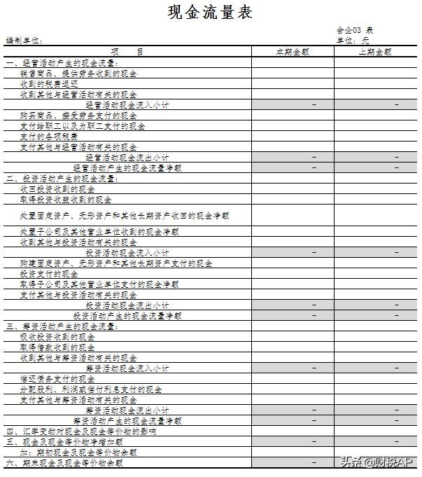 现金流量表(两个版本所含项目完全相同)