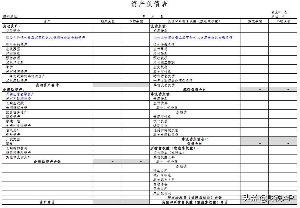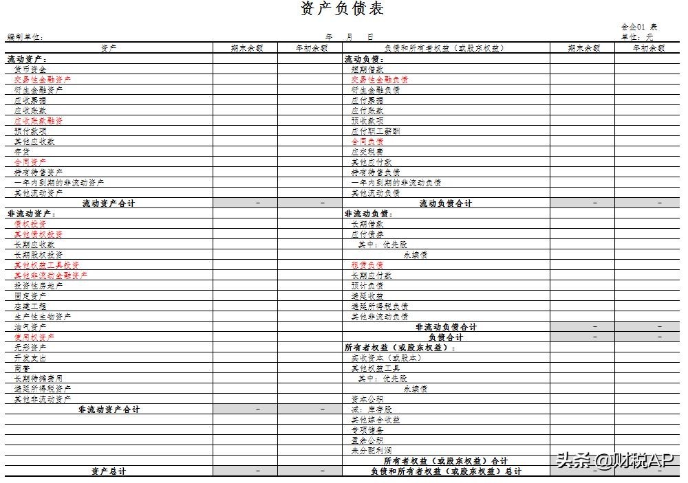 资产负债表(除蓝红标注项目外,其他项目相同)