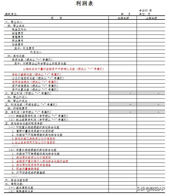 利润表(除蓝红标注项目外,其他项目相同)