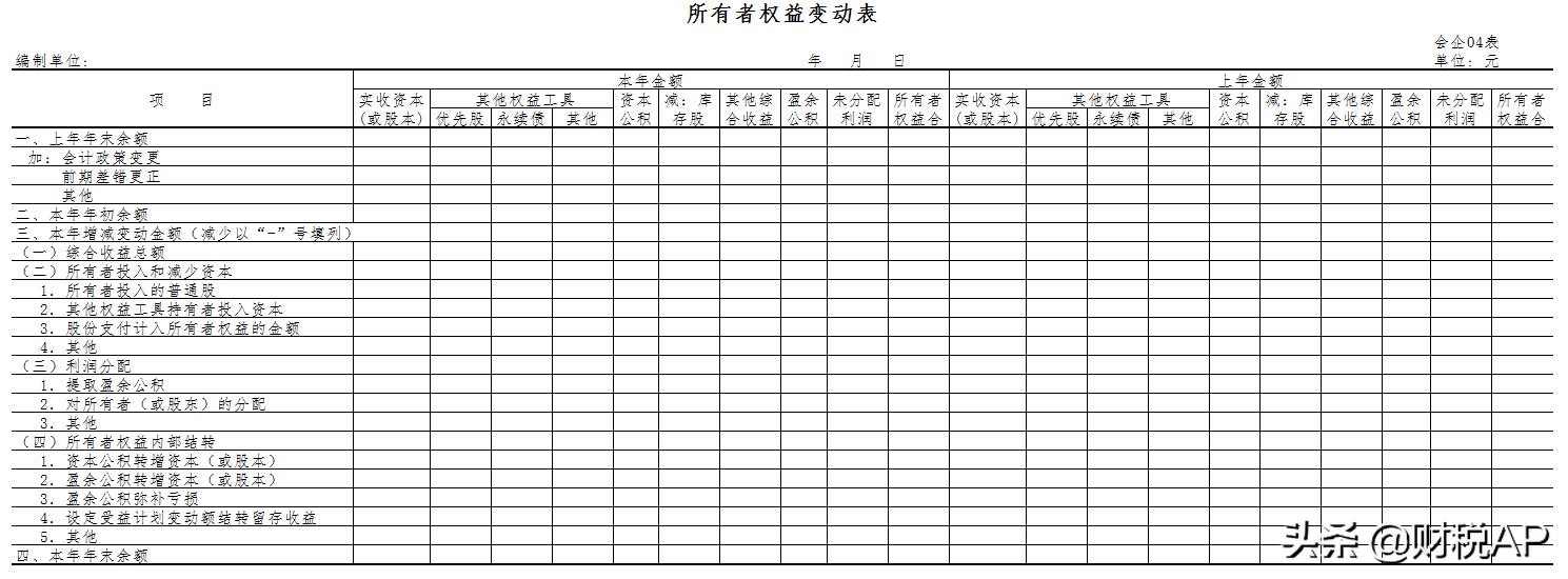 所有者权益变动表(除蓝红标注项目外,其他项目相同)