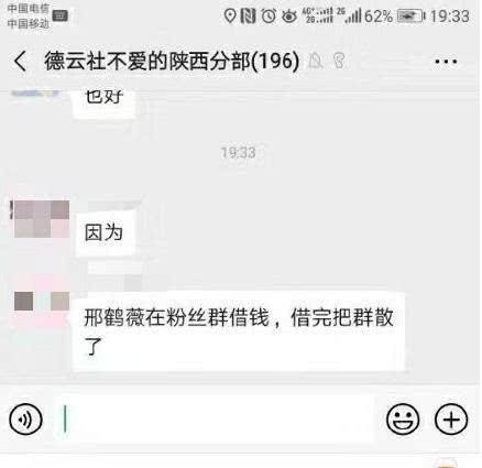 但也有粉丝爆料说邢鹤薇在粉丝群中借钱,随后直接解散了粉丝群。可想而知这一行为可是相当恶劣,已经涉及到了相关法律。邢鹤薇是德云社中为数不多的女弟子,师父是郭德纲妻子王惠。但这只是粉丝的说法,是否是真实的消息还需要进一步调查。