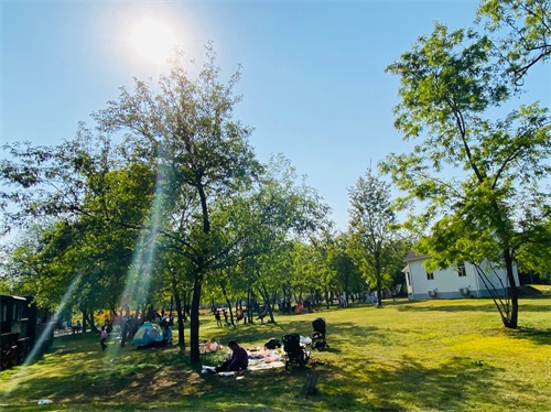 12日天气晴好,不少市民前往体育中心对面河心岛野餐 全媒体记者 王延娟 摄