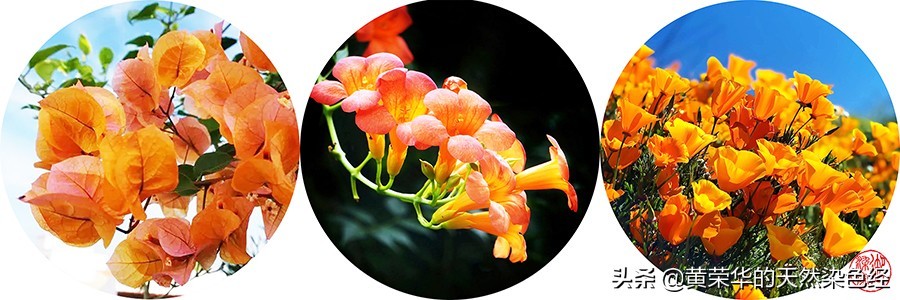 橘黄色在传统染色中,可选择苏木和黄栌或石榴皮混色染,使用明矾作为媒染剂。