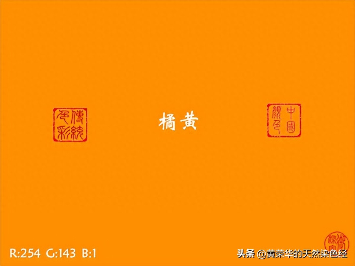 橘黄色比黄色略深,如同橘皮般的颜色,显得非常有朝气的颜色。出自唐李伯珍《与医帖》云:白金一梃,奉备橘黄之需。始不晓所谓,及观《续世说》,有枇杷黄医者忙,橘子黄医者藏,乃知时使然耳。