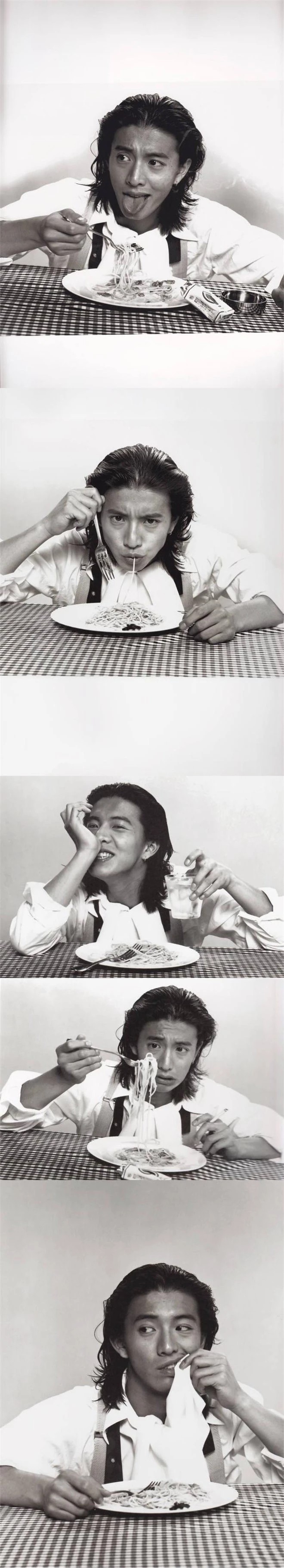 木村有着一种侵略性的独特魅力,对于他的美是毫无疑问的。在他影响力最鼎盛的时期,他留长发,整个日本的男人开始流行留长发,也就是传说中的木村头。他剪短发,整个日本的男人都跟着短发。他穿格子衬衫,满大街就流行格子衬衫。