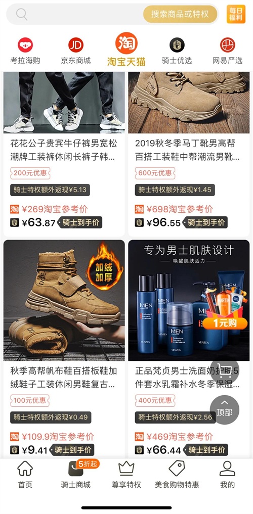 其骑士商城和京东、天猫、淘宝、网易严选、考拉海购、拼多多等电商平台均有合作,为骑士用户提供促销活动和优惠券及骑士专享价格并提供一定的返现,这点和其他一些提供优惠券返现的App差不多,就是返现的多少的问题。
