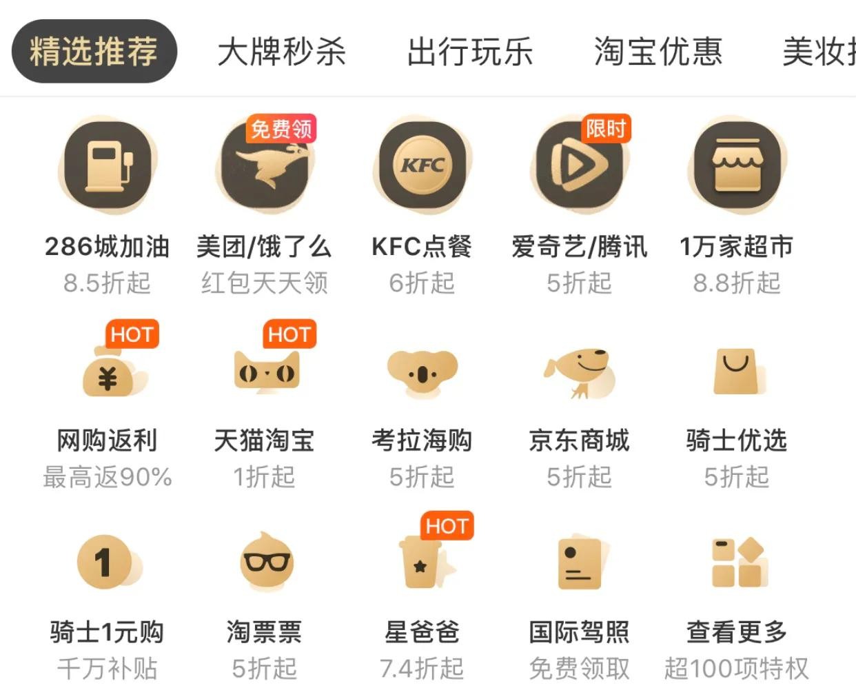 说白了其实就是一张优惠卡,覆盖范围广,涉及商家比较多,包含 优惠充值、美食餐饮、购物休闲、超市购物、旅行出行、生活福利、车主福利。