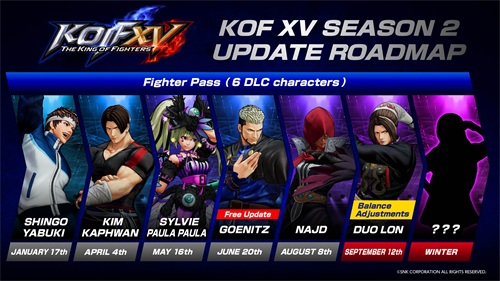『拳皇15』第2赛季加上之前免费发布的角色“高尼茨”,将一共有7位DLC角色参战。另外在“堕珑”上线同时,还将实施游戏平衡性调整。今后也敬请期待不断持续进化的『拳皇15』。