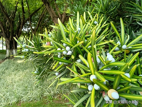 下午去公园看到一颗罗汉松,长得非常好,已经结出了果实。