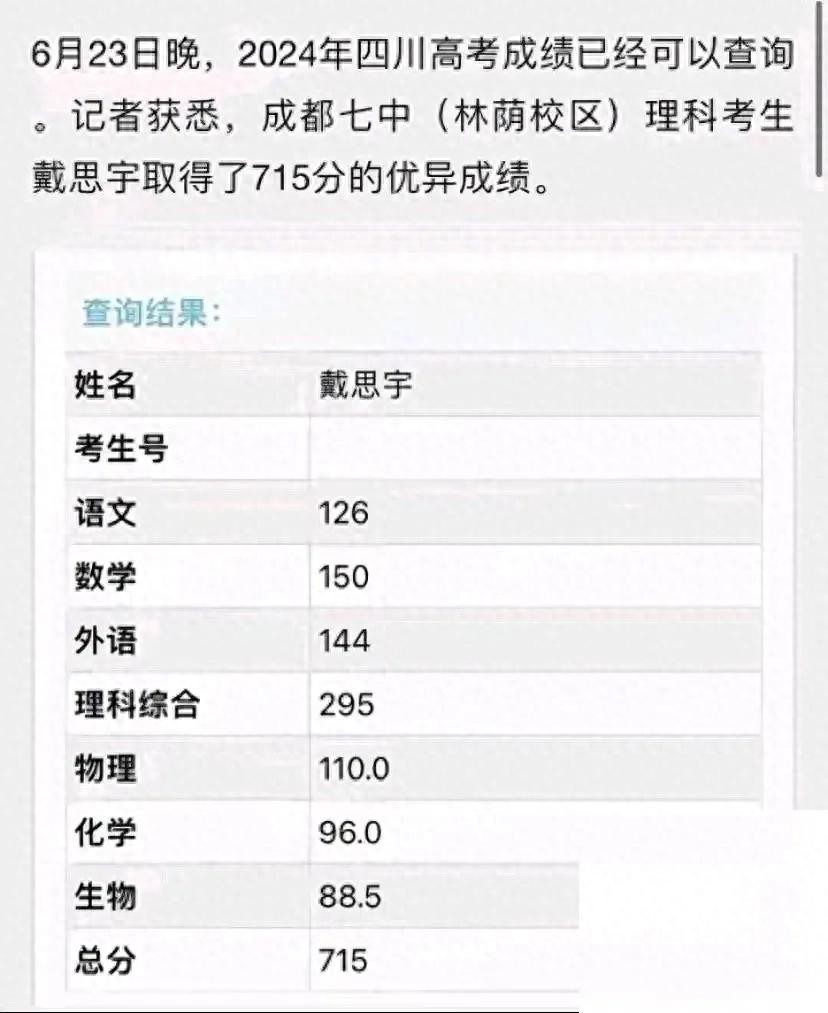 2024四川状元总分715分,数学物理满分,令人震撼,惊艳全场!