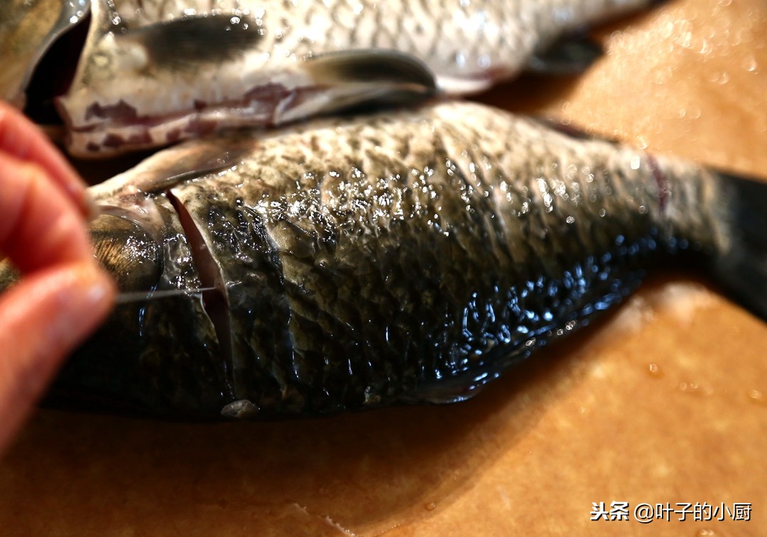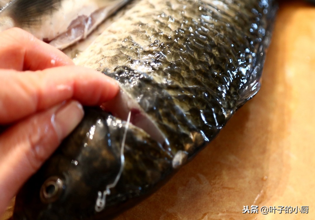2、鲫鱼清理干净,里面的黑膜一定要洗干净,两边的腥筋抽掉。