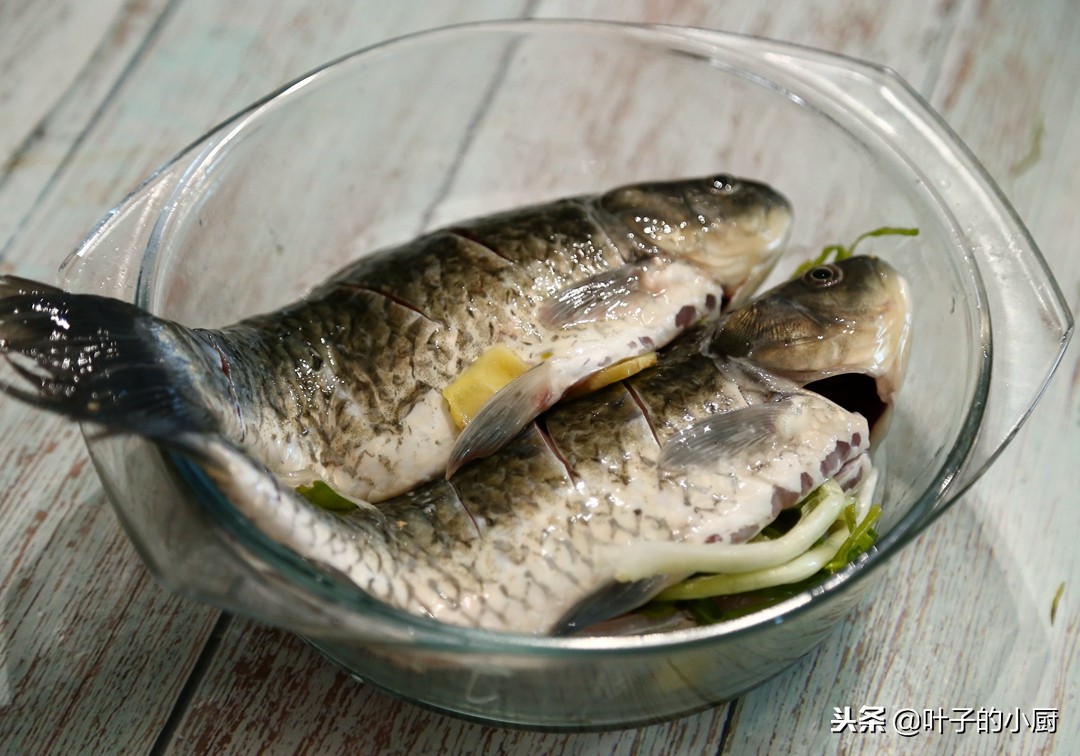 6、腌制好的鲫鱼用厨房纸巾擦干水分。
