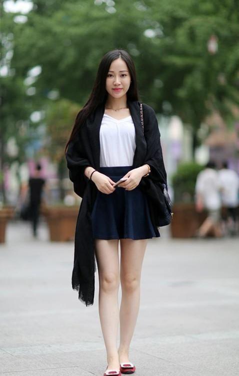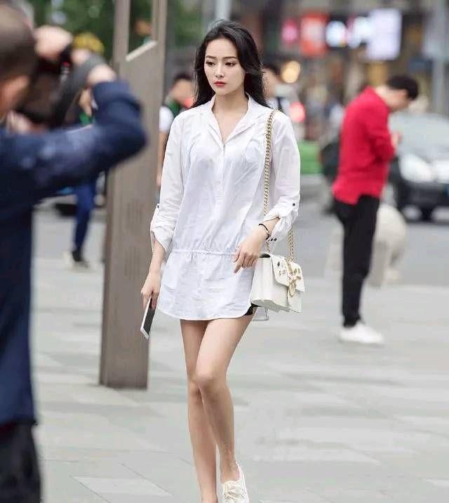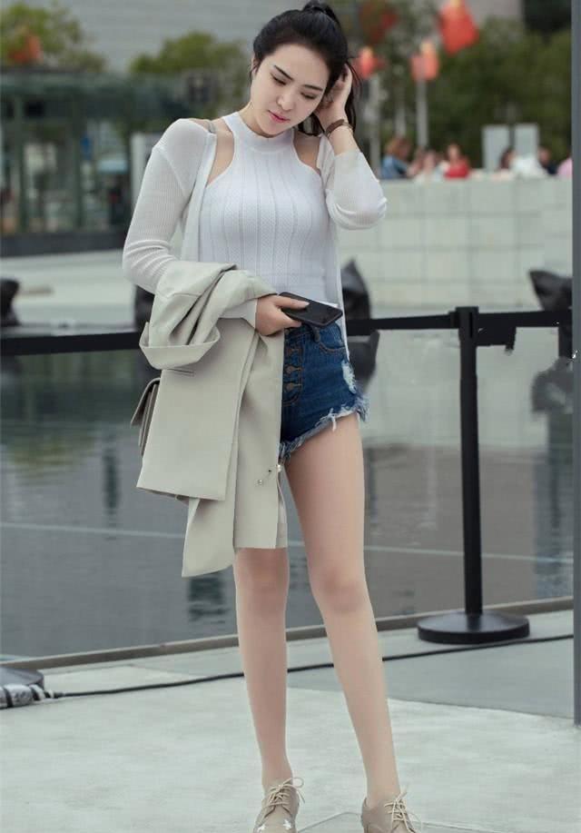 小姐姐一件白上衣穿出修身效果,修长美腿一览无余